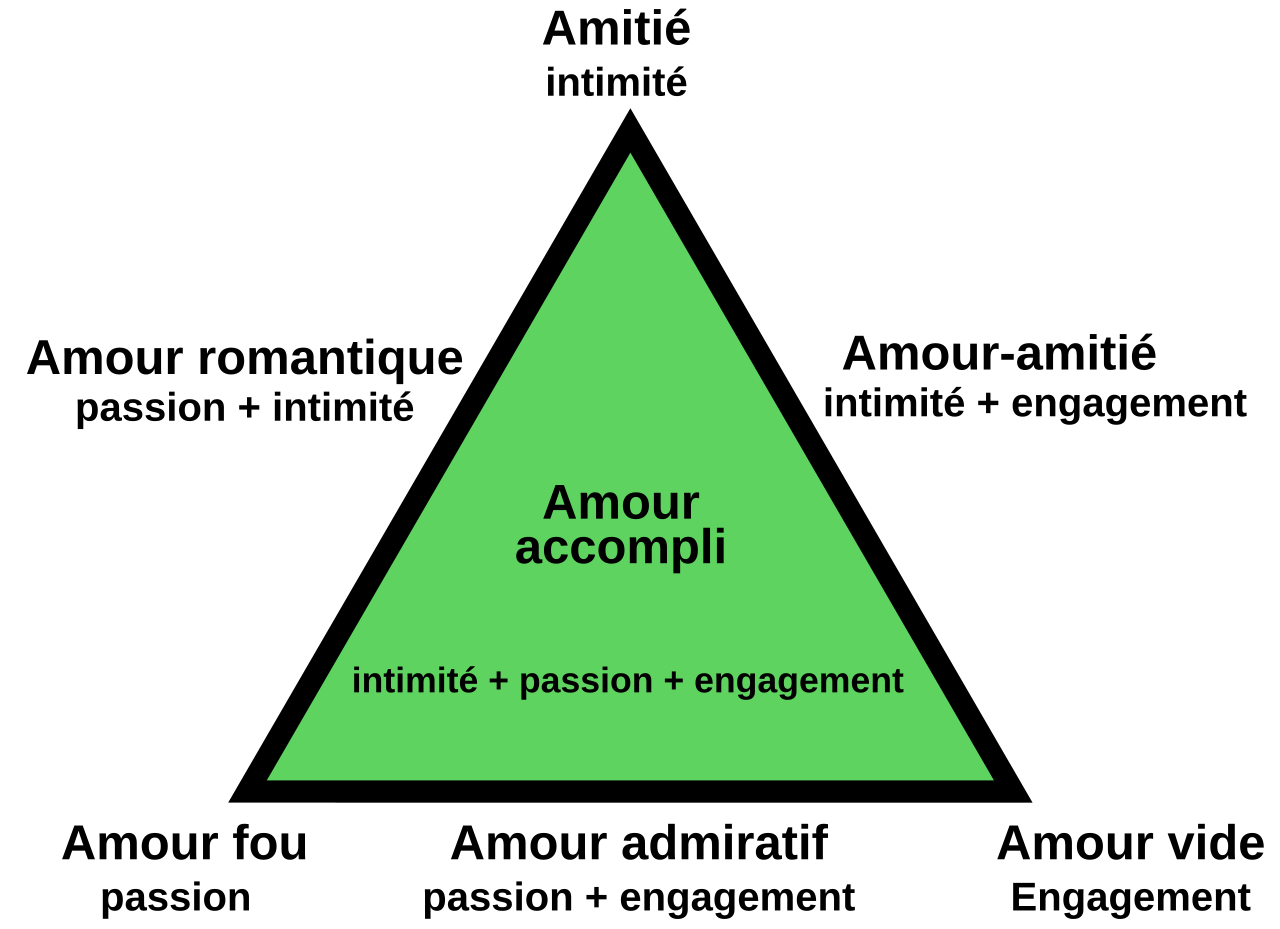 The combination of these components creates seven different kinds of love experiences (nonlove, liking, infatuated love, empty love, romantic love, companionate love, fatuous love, and consummate love).